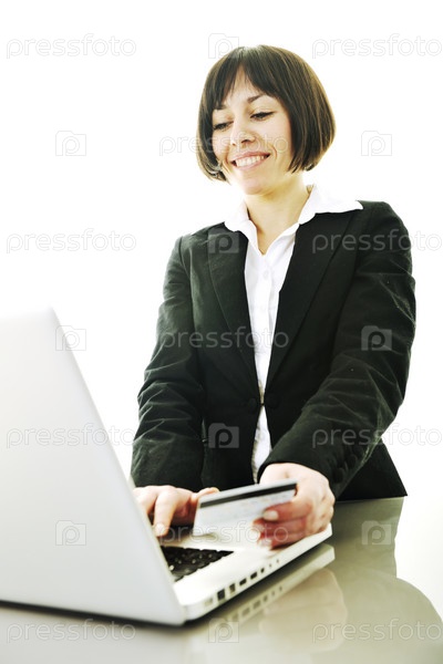 Молодая деловая женщина собирается делать покупки через интернет