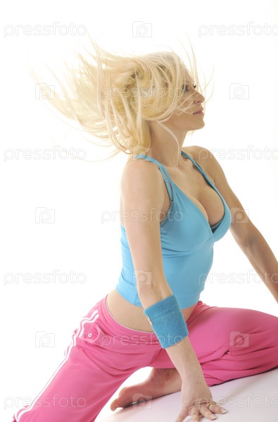Красивая девушка танцует на белом фоне
