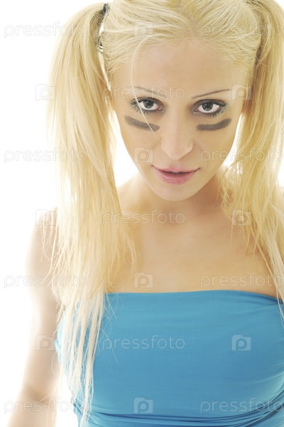 Портрет красивой блондинки в спортивной одежде на белом фоне