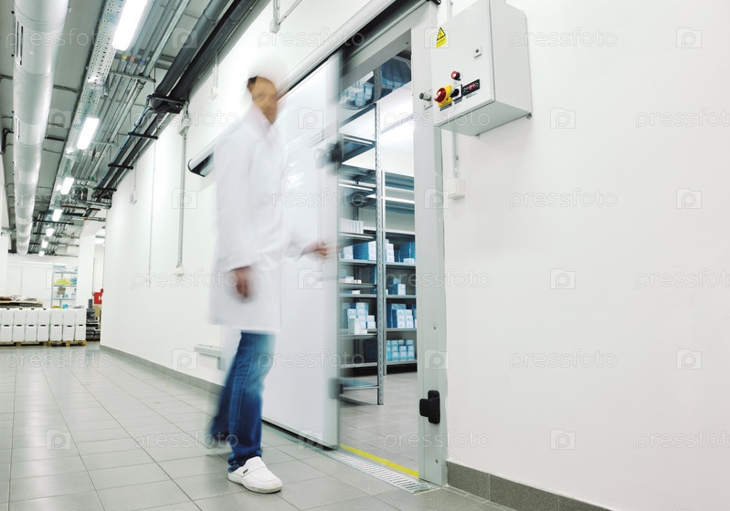Сотрудник в белом халате на фармацевтическом предприятии