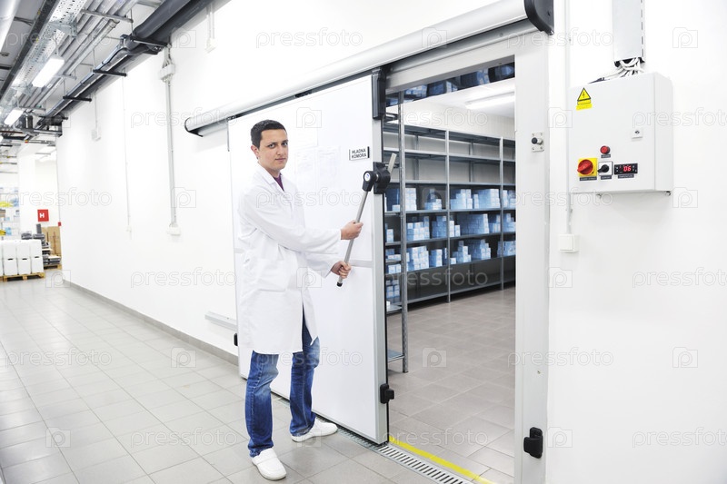 Сотрудник в белом халате на фармацевтическом предприятии
