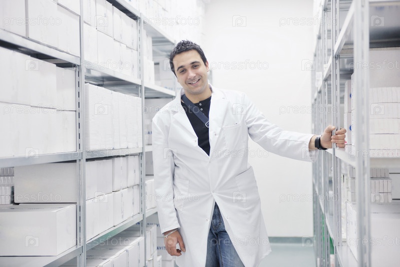 Сотрудник в белом халате на фармацевтическом предприятии