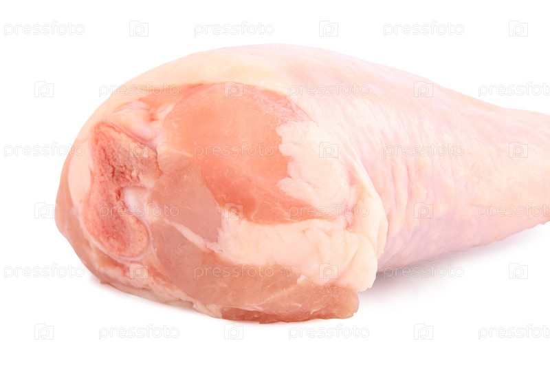 Сырая куриная нога на белом фоне (ближе)