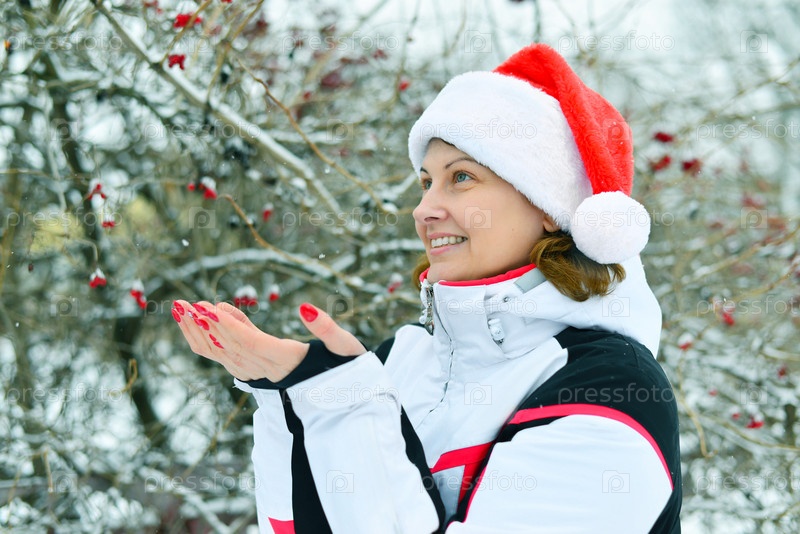 Женщина в шапке Санта-Клауса