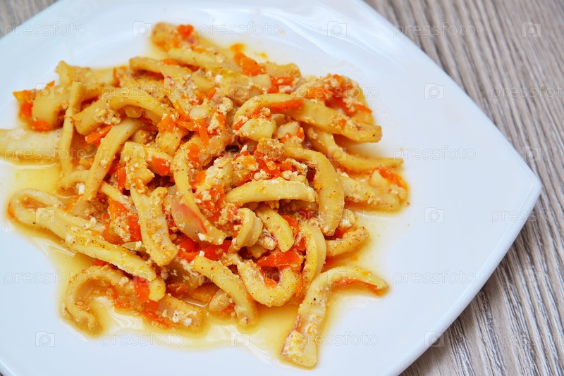 Кальмары тушеные в сметане с морковью