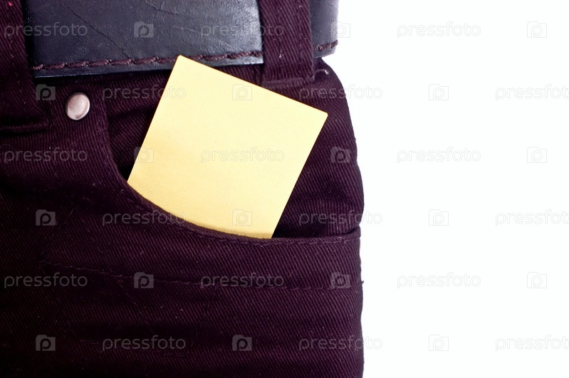 Желтая бумага с сообщением в кармане черных джинсов