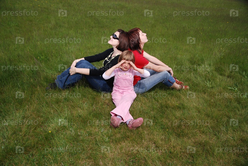 Две девушки и маленькая девочка на открытом воздухе