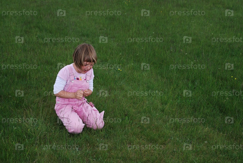 Маленькая девочка плачет на открытом воздухе
