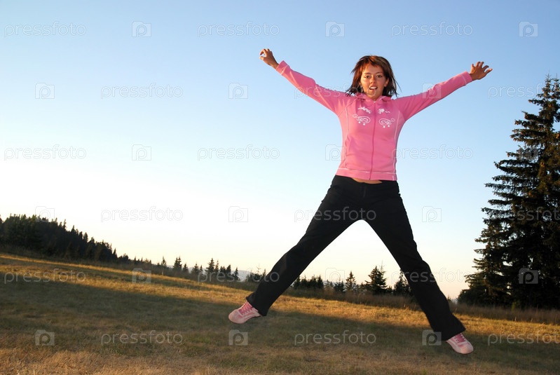 Молодая женщина в прыжке на открытом воздухе