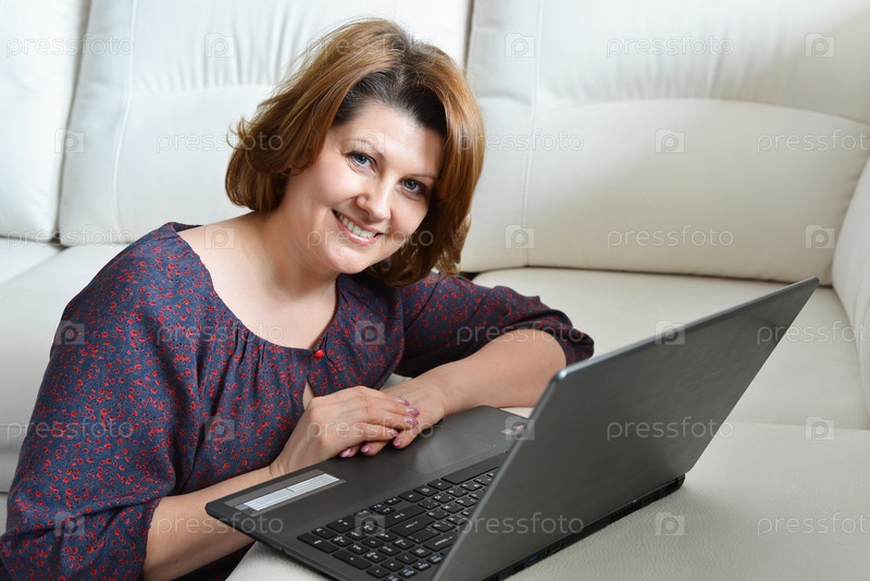 Женщина, работающая на компьютере дома