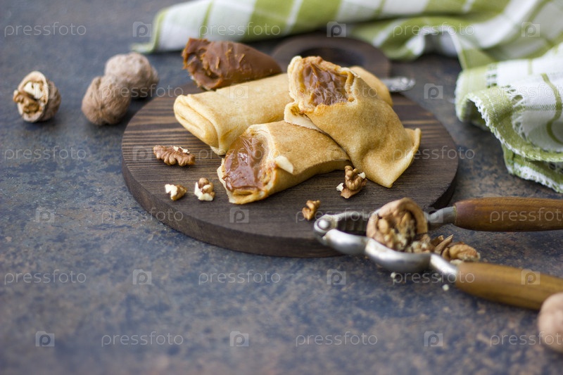 Блинчики с вареной сгущенкой и орехами