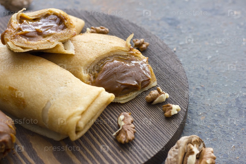 Блинчики с вареной сгущенкой и орехами
