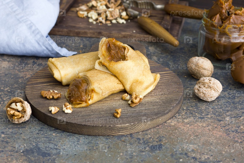 Блинчики с вареной сгущенкой и орехами