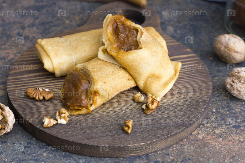 Блинчики с вареной сгущенкой и орехами