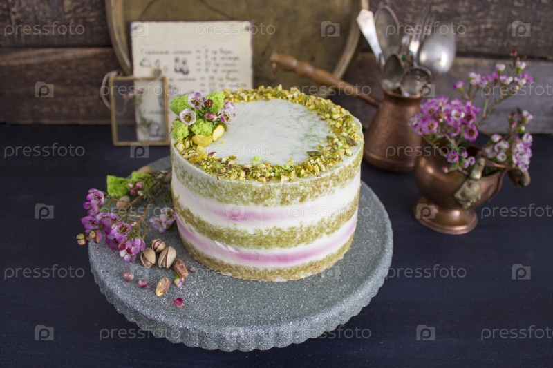 Малиновый торт с фисташковым кремом