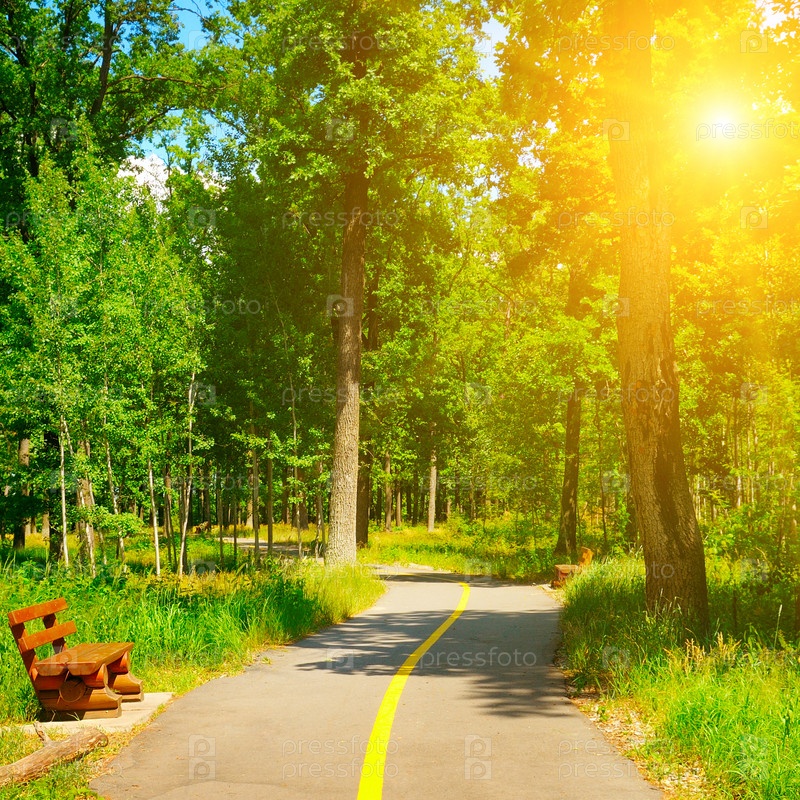 Летний парк с пешеходными дорожками