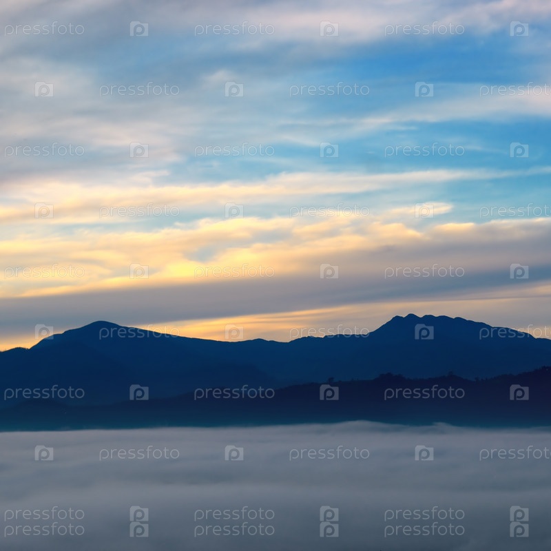 Восход, туман и горные вершины