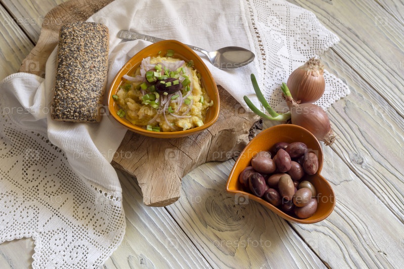Пюре из бобовых с зеленью и маслинами