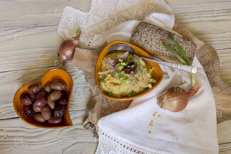 Пюре из бобовых с зеленью и маслинами