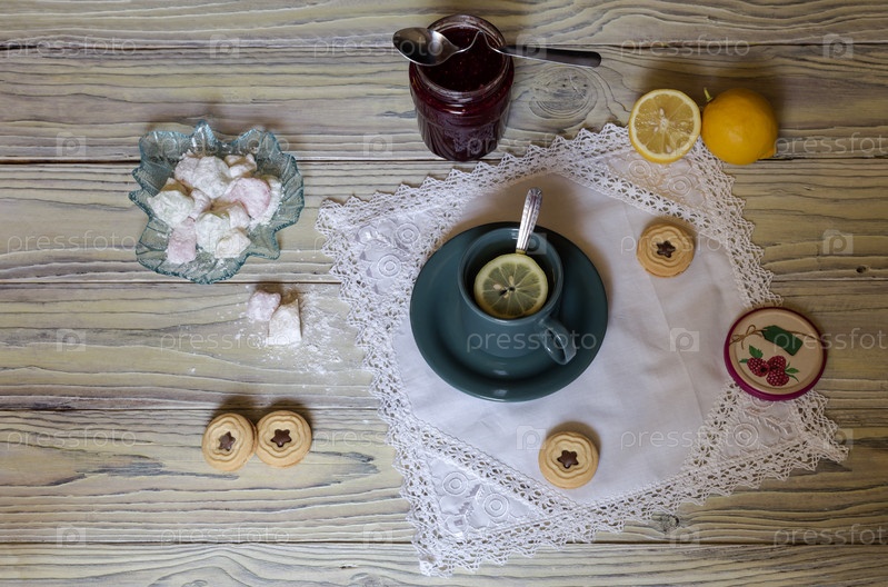 Зеленый чай с лимоном и пастилой