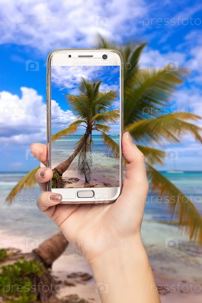 Хороший вид на море с пальмами на экране