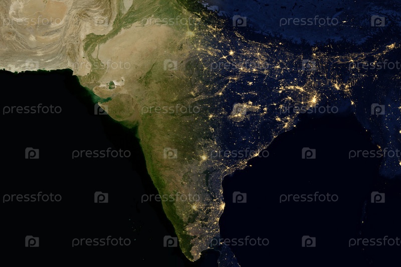 Огни города на карте мира. Индия