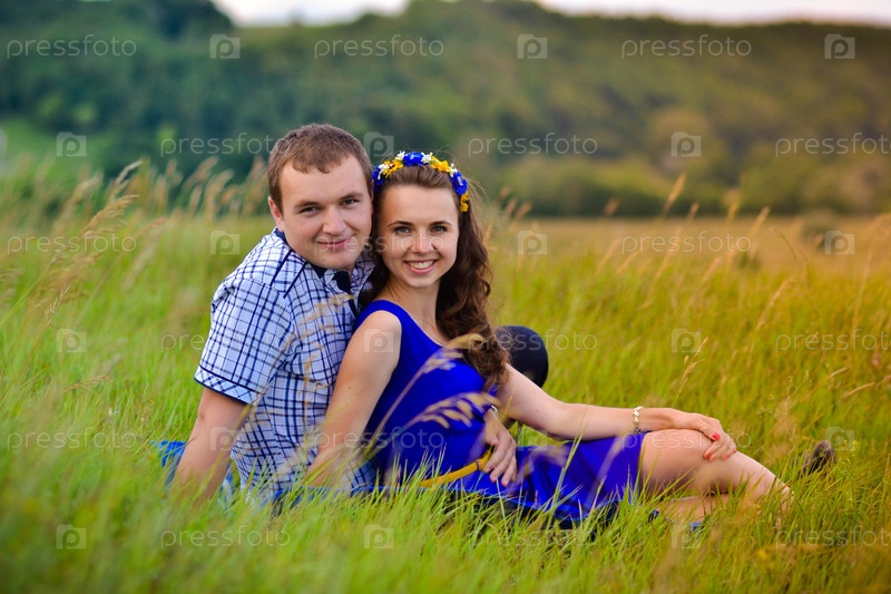 Молодая пара на солнечном поле
