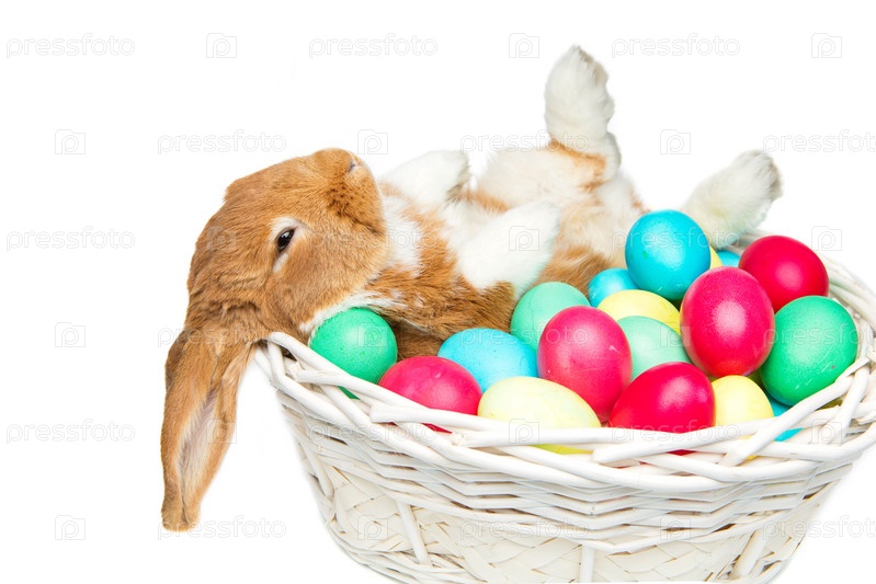 Кролик в корзине с яйцами