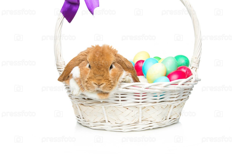 Кролик в корзине с пахальными яйцами