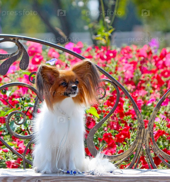 Белый папийон с рыжей головой