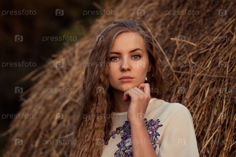 Женщина возле стога сена