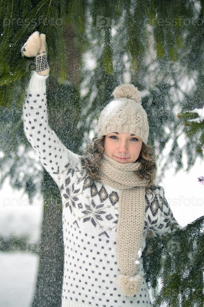 Жизнерадостная девушка в зимнем лесу