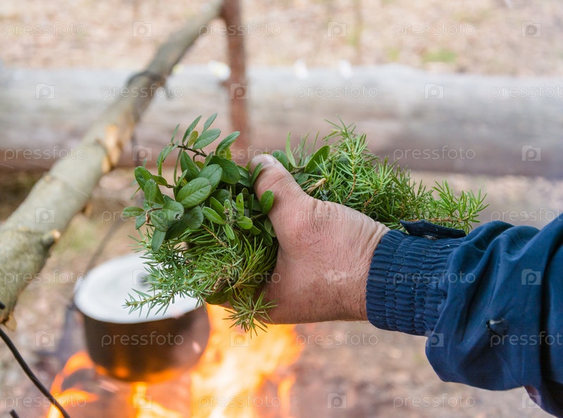 Сбор различных трав для чая
