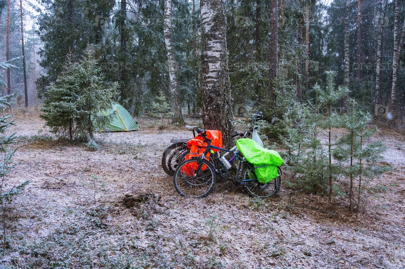 Велоспорт в лесу в снежную погоду