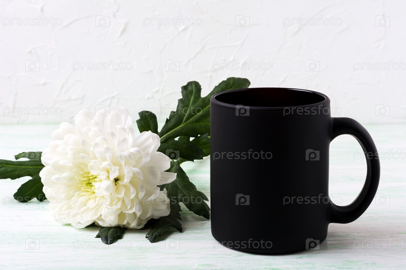 Черная кружка с белыми хризантемами