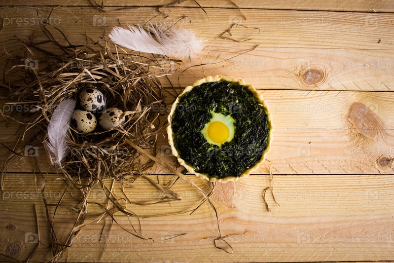 Тарталетка со шпинатом и перепеленым яйцом