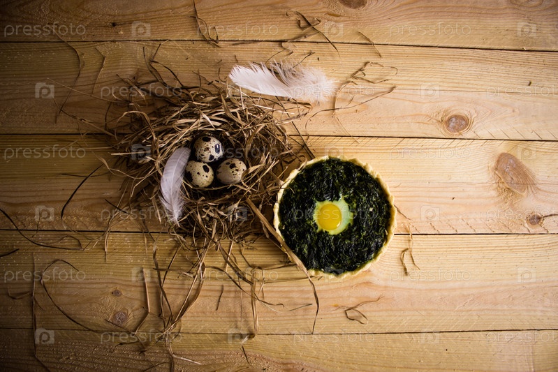 Тарталетка со шпинатом и перепеленым яйцом
