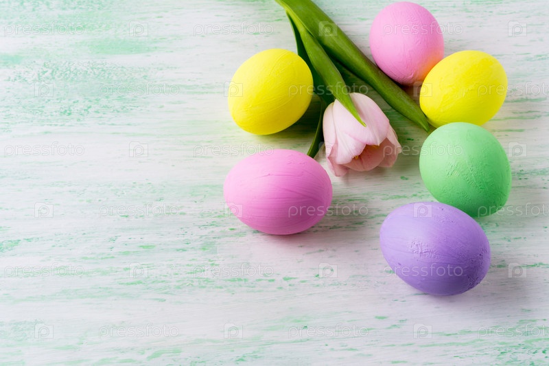Пасхальные яйца и розовый тюльпан