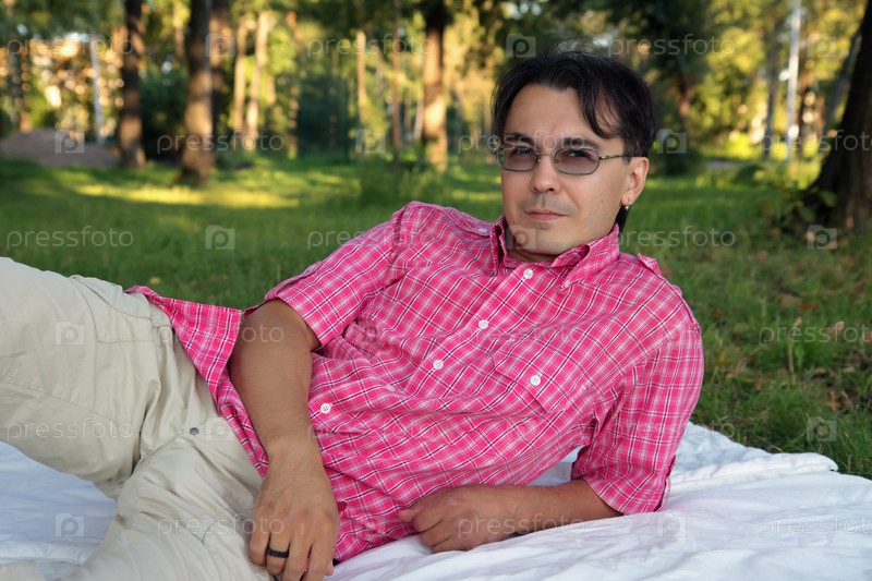 Счастливый молодой человек в парке