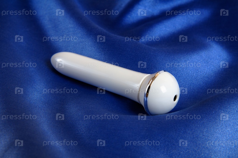 Белый вибратор на фоне синего шелка