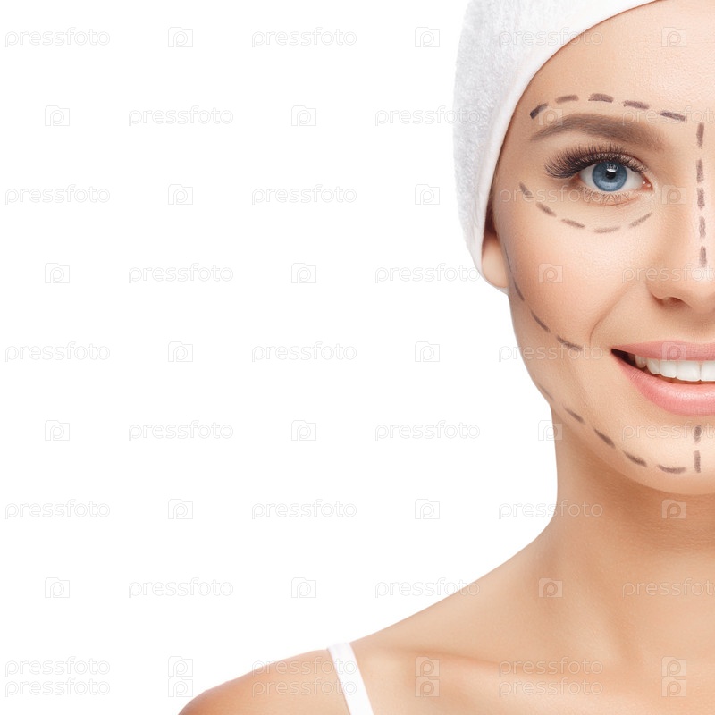 Женщина с линиями коррекции на лице