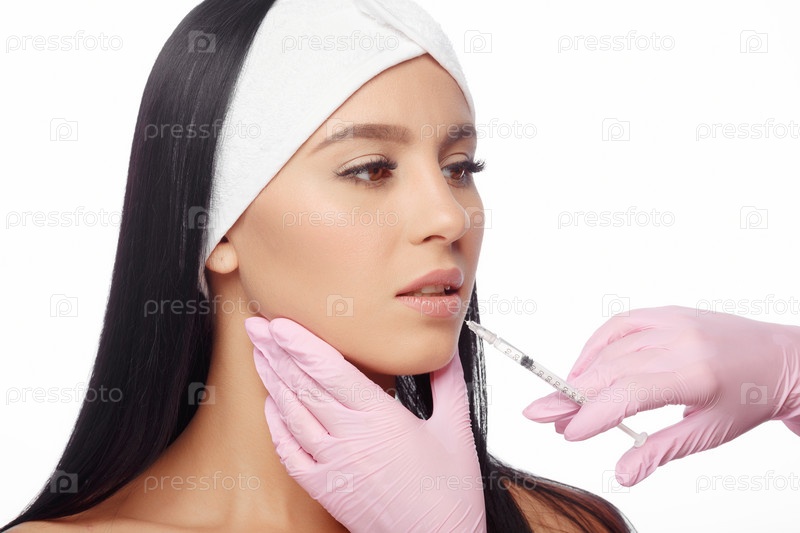 Молодая женщина получает инъекции в губы