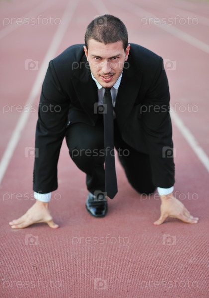 Бизнесмен на беговой дорожке на старте