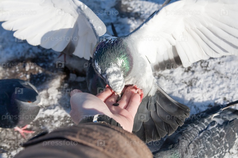 Голубь на руке человека