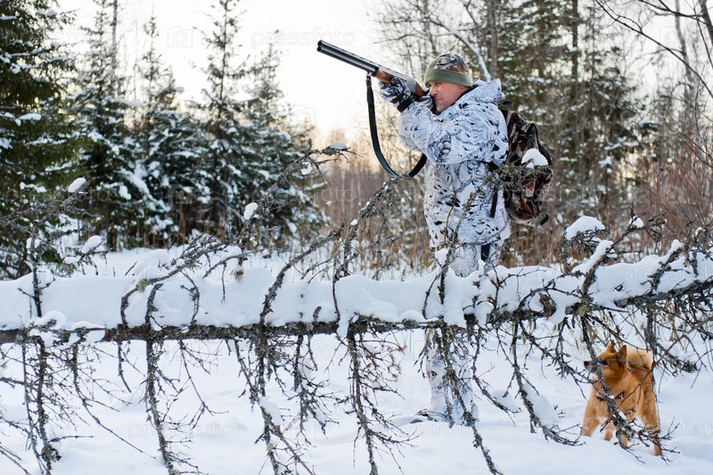 Охотник в снежном лесу