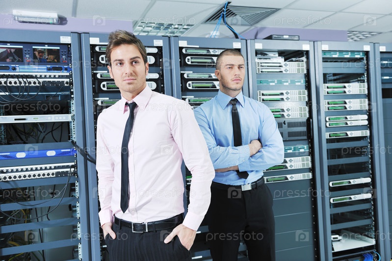 Два инженера в серверной комнате