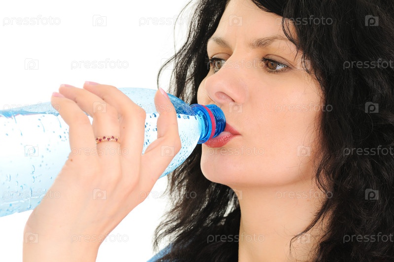Женщина с бутылкой воды изолирована на белом фоне