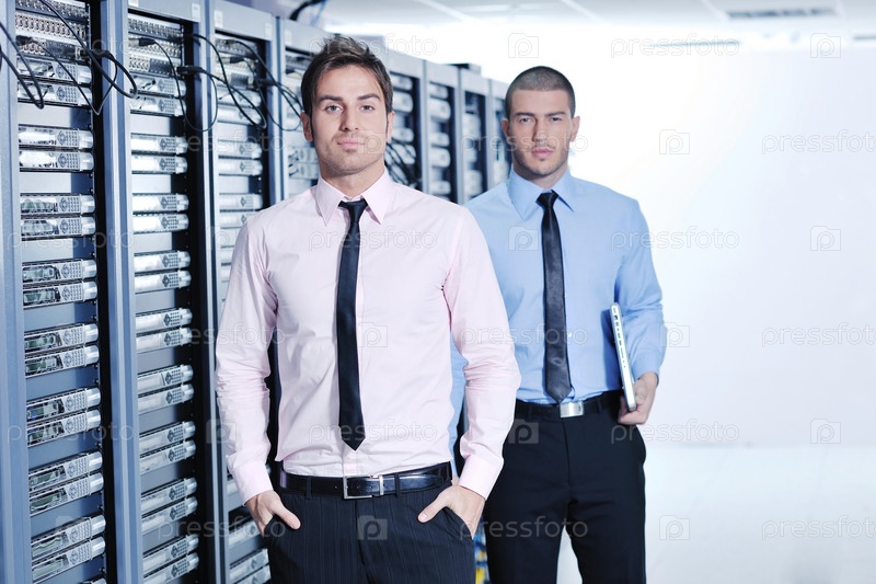 Деловые люди в серверной комнате центра обработки данных