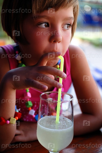 Девочка пьет прохладительный напиток