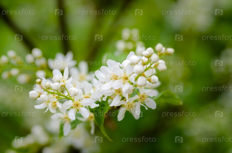 Белые ароматные цветы черемухи